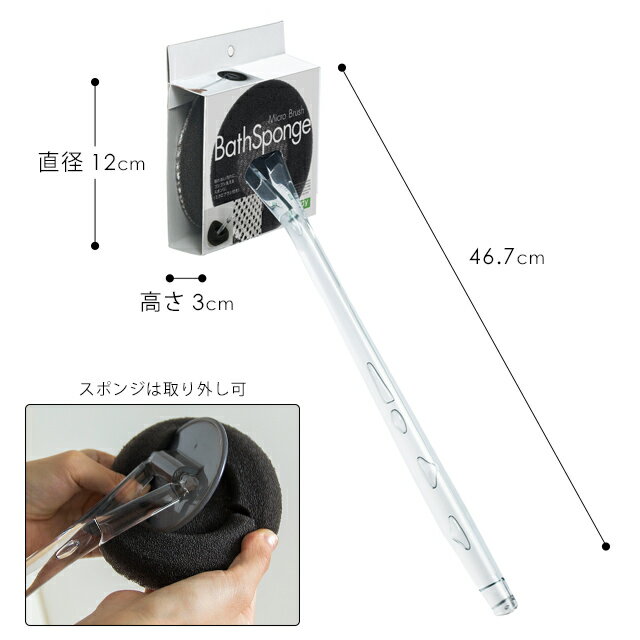 サイズ(本体) 約 ヘッド直径 12cm × 全体長さ 46.7cm 材質 本体柄:AS樹脂本体ヘッド:ポリエチレンスポンジ:脱膜ウレタンフォーム、ポリエステル 重量 本体:約148g スポンジ:約15g セット内容 tidy バススポンジ 本体(スポンジ付)×1 tidy バススポンジ スペア×1 【lump】 お風呂洗い で 大活躍 の tidy バススポンジ 本体 と 交換用 スペア スポンジ の セット 。